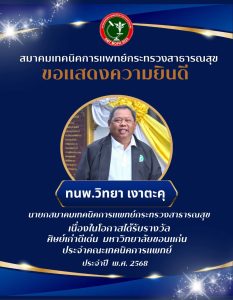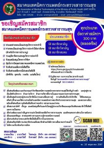 Sangaroon Ritsiri Sangaroon Ritsiri This user account status is Approved About About Posts Posts เนื่องในศุภวารดิถีขึ้นปีใหม่ไทยวันมหาสงกรานต์ปีนี้ ผมขออวยพรให้ทุกท่านมีความสุข ความอบอุ่นในครอบครัวเดินทางปลอดภัยทุกเส้นทางและมีพลังในการทำงานเพื่อพี่น้องประชาชน 6 วัน ago in: ข่าวประชาสัมพันธ์ no comments 2 เมษายน 2569 วันคล้ายวันพระราชสมภพ สมเด็จพระกนิษฐาธิราชเจ้า กรมสมเด็จพระเทพรัตนราชสุดาฯ สยามบรมราชกุมารี 2 สัปดาห์ ago in: ข่าวประชาสัมพันธ์ no comments สมาคมเทคนิคการแพทย์กระทรวงสาธารณสุข ขอแสดงความยินดี 3 สัปดาห์ ago in: ข่าวประชาสัมพันธ์ no comments ขอเรียนเชิญสมัครสมาชิก 1 เดือน ago in: ข่าวประชาสัมพันธ์ no comments ขอเชิญนักเทคนิคการแพทย์นักวิทยาศาสตร์การแพทย์ (เวชศาสตร์การธนาคารเลือด) 1 เดือน ago in: ข่าวประชาสัมพันธ์ no comments ขอแสดงความยินดี 2 เดือน ago in: ข่าวประชาสัมพันธ์ no comments ขอแสดงความยินดี 3 เดือน ago in: ข่าวประชาสัมพันธ์ no comments ขอแสดงความยินดี 3 เดือน ago in: ข่าวประชาสัมพันธ์ no comments 5 ธันวาคม 4 เดือน ago in: ข่าวประชาสัมพันธ์ no comments แนวปฏิบัติทางห้องปฏิบัติการชันสูตรและนิติเวชศาสตร์ สำหรับการตอบสนองต่อสถานการณ์อุทกภัย : กรณีศึกษาอุทกภัยภาคใต้ พฤศจิกายน พ.ศ. 2568 4 เดือน ago in: ผลงานวิชาการ no comments load more posts